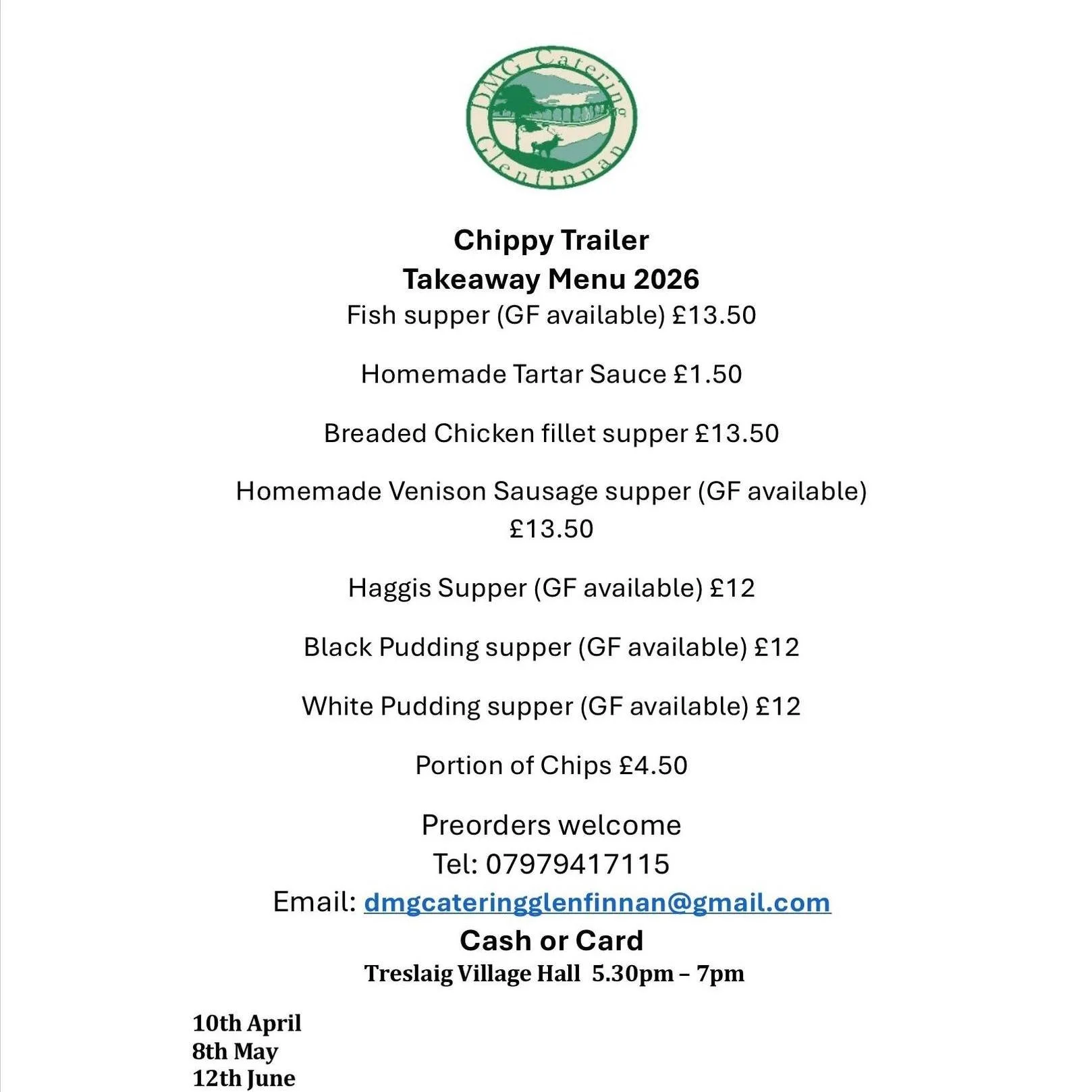 Fresh dates for 2026 and all your favourites are on the menu, fish suppers, venison sausages and more. Grab an easy Friday night dinner and skip the cooking. First date is this Friday 10th April!